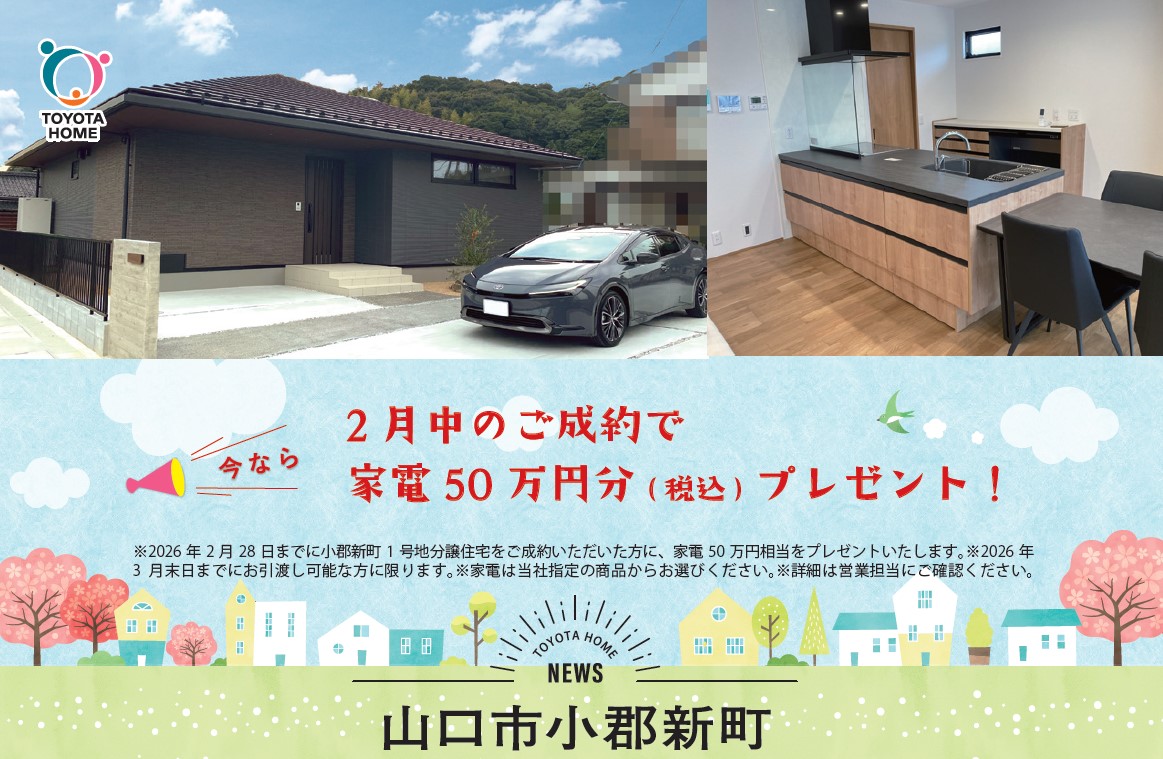 2月中のご成約で家電50万円(税込)分プレゼント!!
